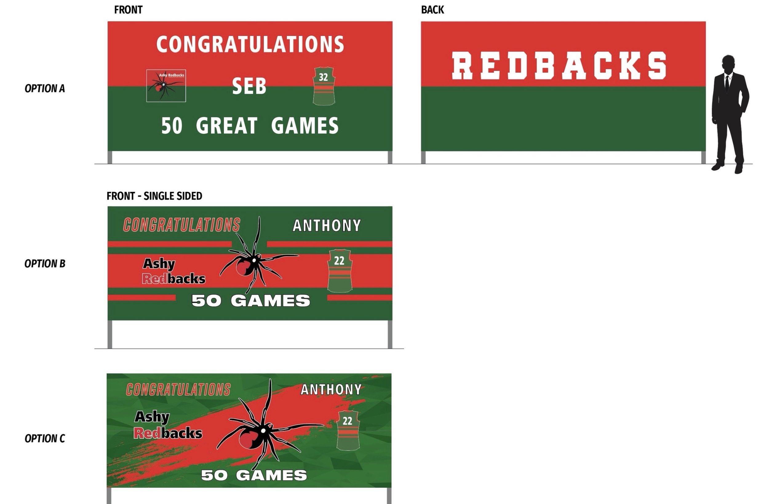 Bernie and his children, Maddie and Jack, also supply stress free banner making services to help you prepare for your milestone game. Bernie responds super fast to all enquiries, and you'll see a mock-up of the design in your in-box to share with your child/children.